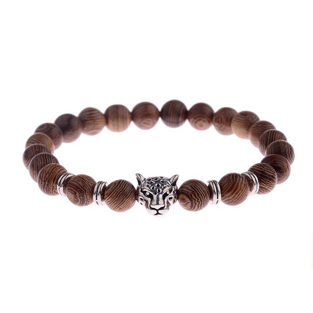 Popis: Stylový módní pánský i dámský náramek Wood Tygří hlava vyrobený ze dřeva a doplněný stříbrnou hlavou tygra.