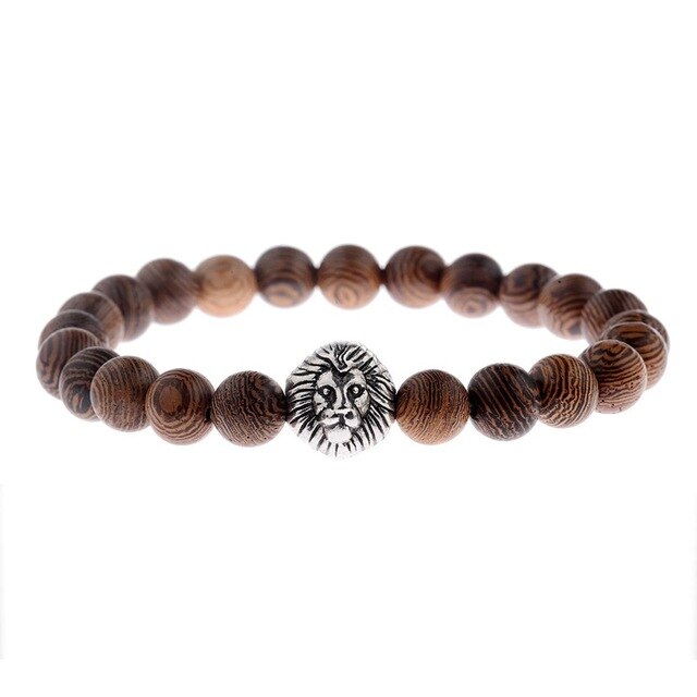 Popis: Stylový módní pánský náramek Wood Lev je vyrobený ze dřeva a doplněný stříbrnou hlavou lva.