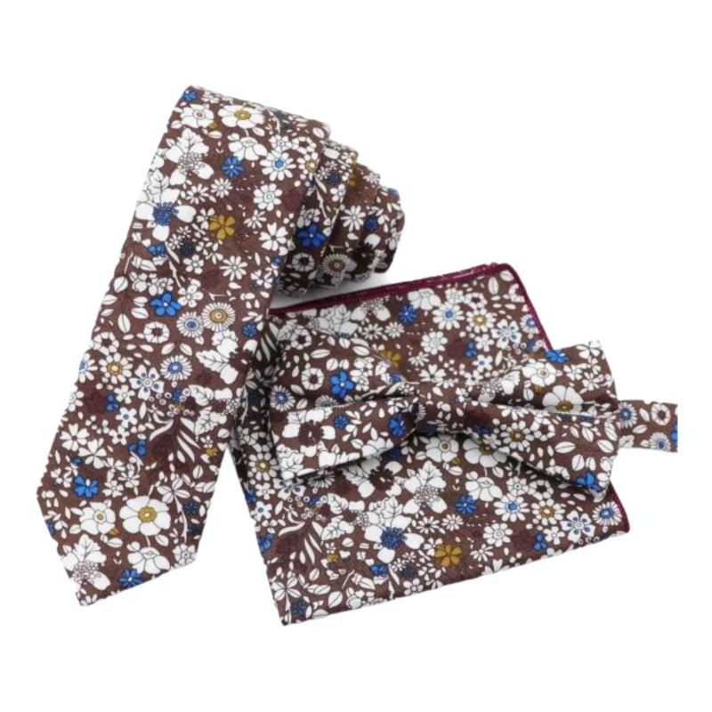 Hnědý set kravata, motýlek a kapesník FlowerSkladem 1 set799 Kč/ set
