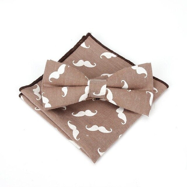 - Hnědý set motýlek a kapesník Knír