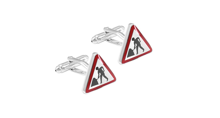 Popis: Manžetové knoflíčky Dopravní značka práce na silnici jsou skvělým módním doplňkem pro všechny silničáře, kteří musejí dnes a denně opravovat poničené vozovky.