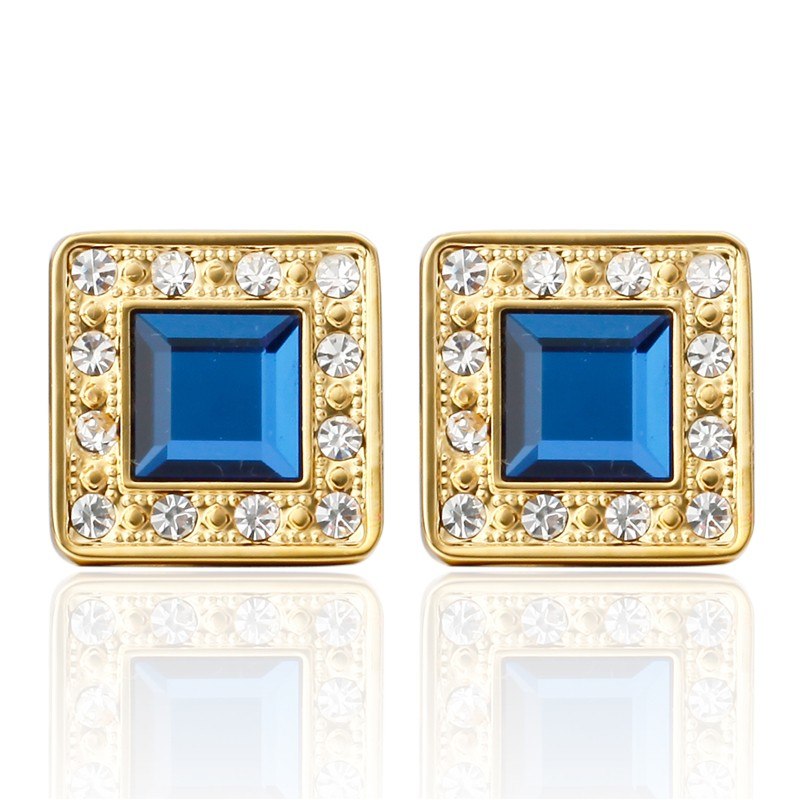 Manžetky mají design čtverce, který je osázený dokola bílými krystaly a uprostřed jedním velkým modrým krystalem.