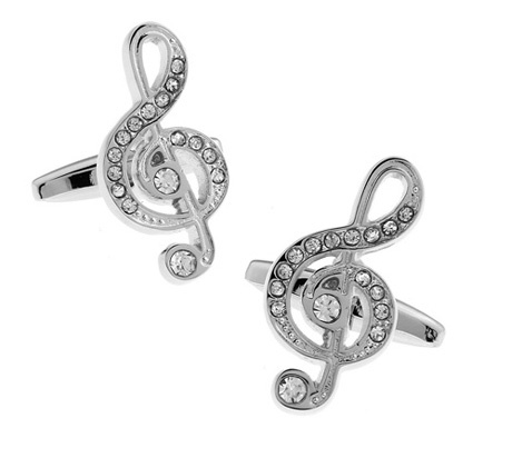 Manžetové knoflíčky Houslový klíč stříbrný krystaly