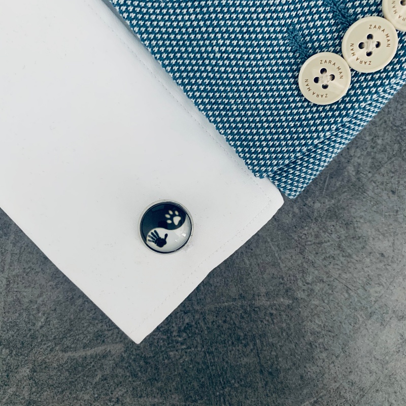 Popis: Manžetové knoflíčky Round vynikají svým designem otisku lidské ruky a tlapky kočičky.