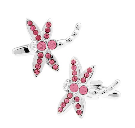Popis: Manžetové knoflíčky Vážka ozdobená růžovými krystaly jsou skvělým módním doplňkem pro všechny, kteří mají rádi tento krásný hmyz.