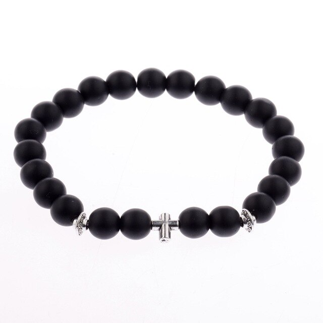 Popis: Stylový módní pánský a dámský náramek Křížek vyrobený z matných černých korálků a doplněný stříbrným křížkem.