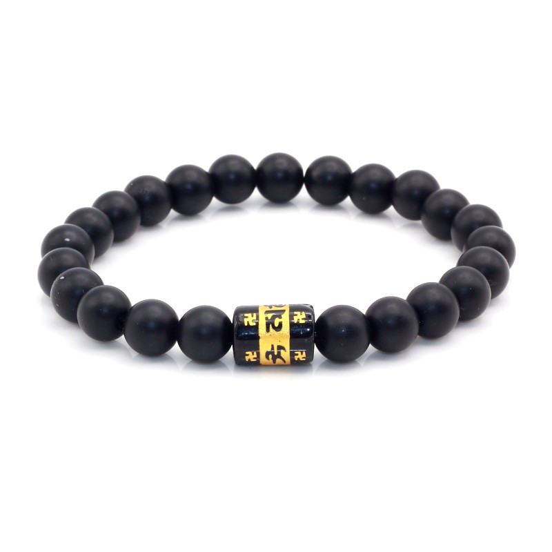 Popis: Stylový módní pánský náramek Modlitební tibetský váleček vyrobený z matných onyx kamenů a doplněný válečkem.
