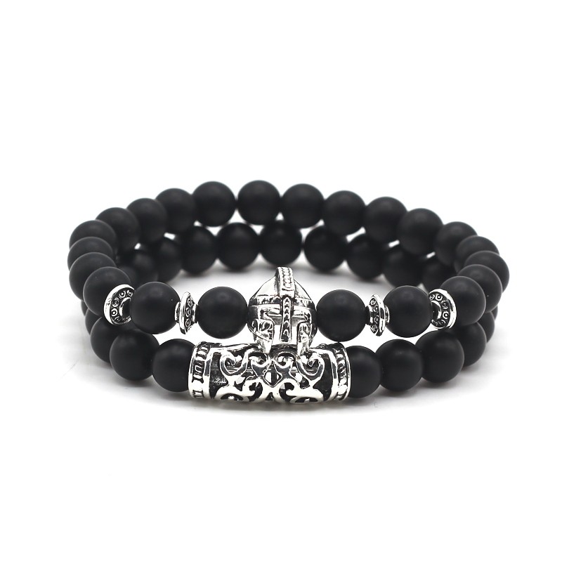 Popis: Stylový módní pánský set náramků Sparta bojovník vyrobený z matných černých kamenů onyx.