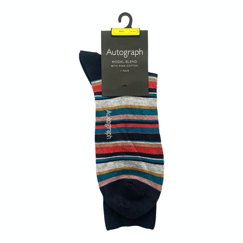 Popis: Modré ponožky Autograph Stripes nabízí decentní pruhovaný design, který skvěle doplní formální i neformální oblečení. Pružný, prodyšný materiál se postará o maximální komfort. Vhodné pro každodenní použití i do práce.
