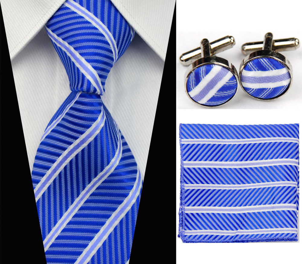 Modro - bílý set kravata, kapesník a manžetové knoflíčky Line