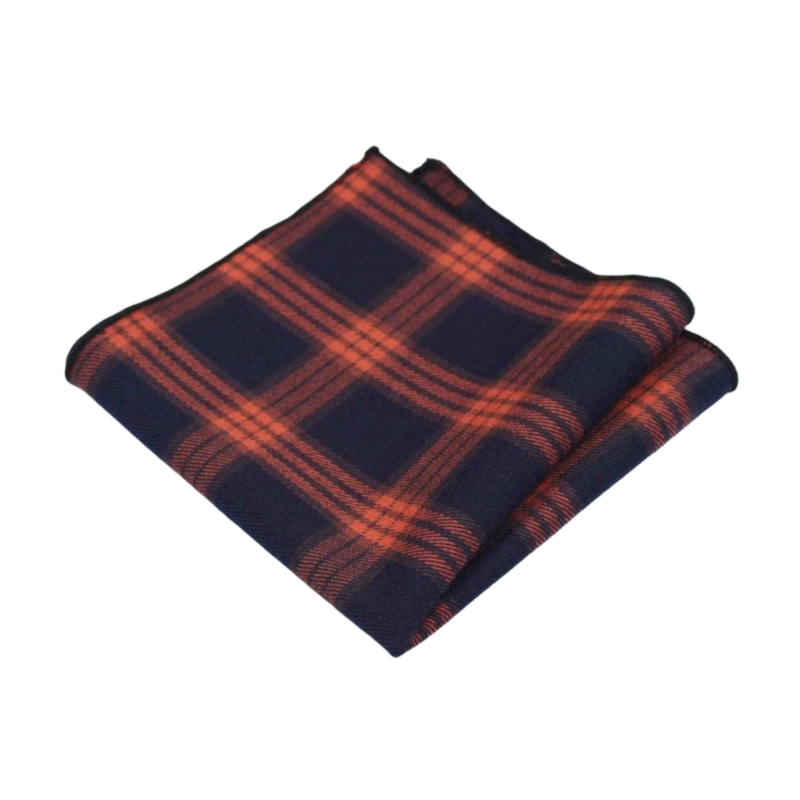Doplňte svůj outfit moderního gentlemana o bavlněný kapesníček do saka Cotton square, který má modro - oranžový design čtverců.