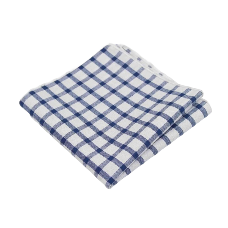 Doplňte svůj outfit moderního gentlemana o stylový kapesníček do saka Mříž, který má modré linky uspořádané do čtvercového vzoru.