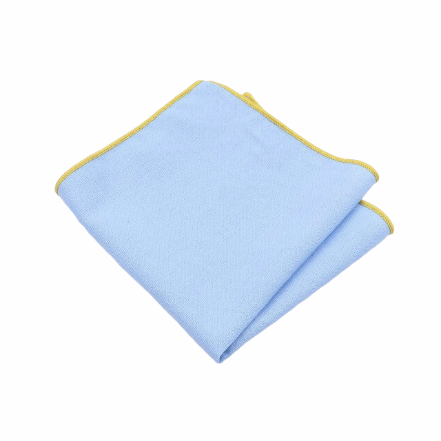 Vyšperkujte svůj dokonalý outfit moderního gentlemana o modrý bavlněný kapesníček do saka Color Line s kontrastním žlutým obšitím.