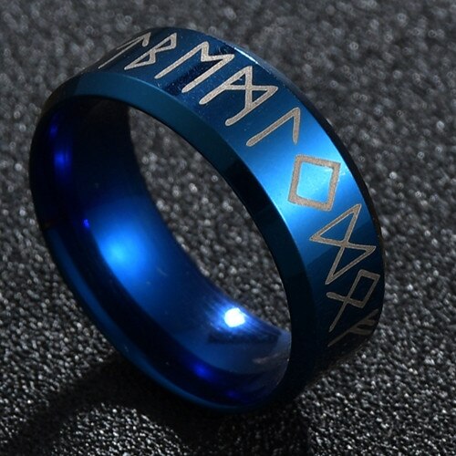Popis: Modrý pánský prstýnek Runy je skvělým módním doplňkem pro všechny muže, kteří se zajímají o tyto pozoruhodné znaky ze Skandinávie a Anglie.