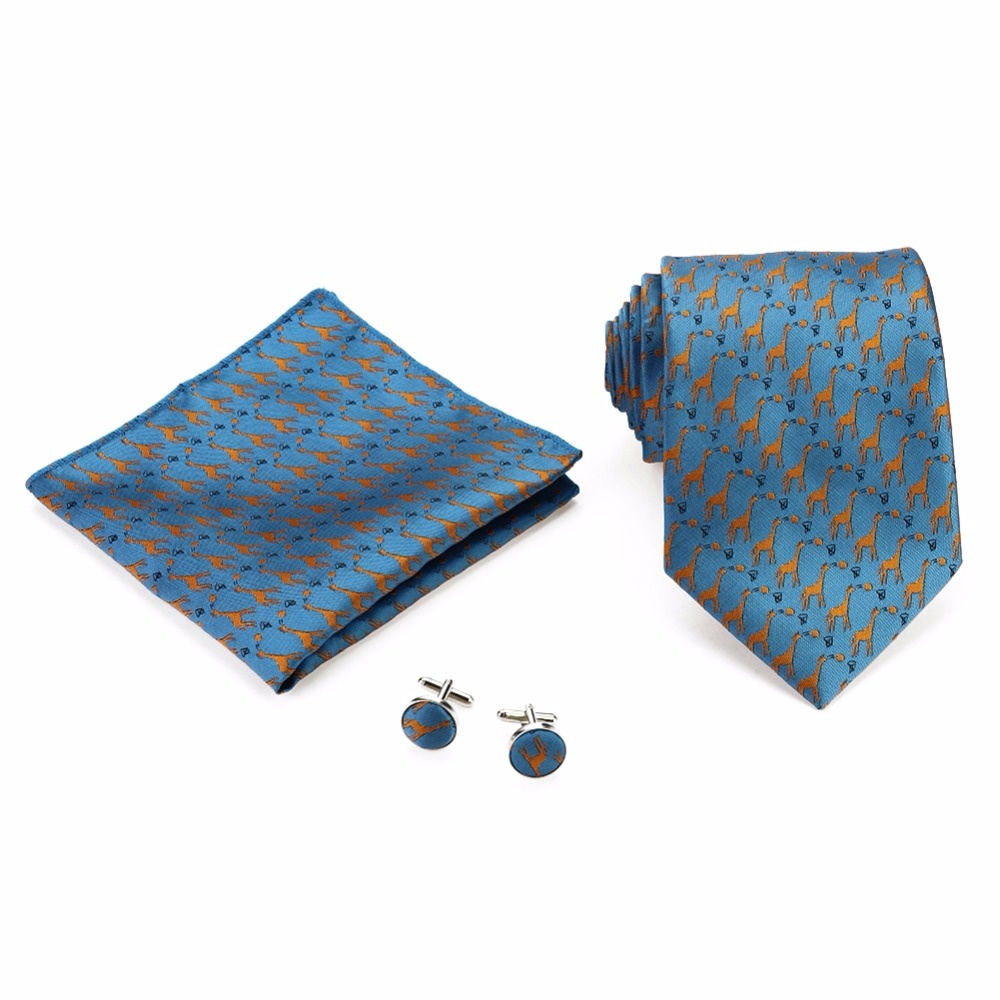 Stylový pánský set - Kravata, kapesník a manžetové knoflíčky s motivem Žirafy