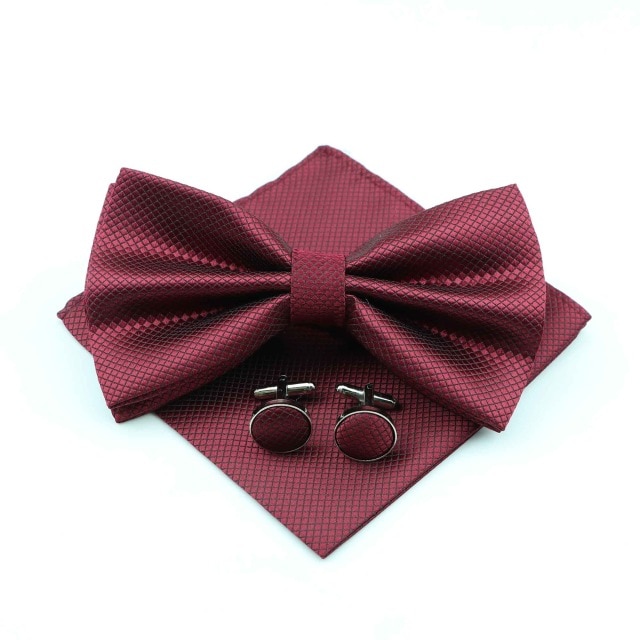 Pánský set složený z motýlku, kapesníku a manžetových knoflíčků