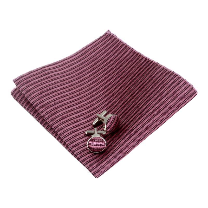 Růžovo - černý set - kapesník + manžetové knoflíčky Stripe