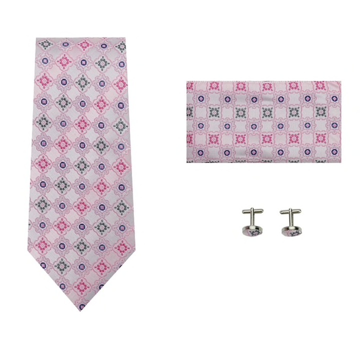 Růžový set kravata, kapesník a manžetové knoflíčky Emblems