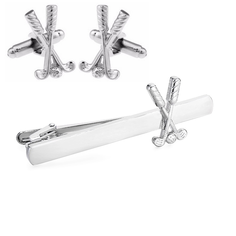 Popis: Stylový módní pánský set složený ze spony na kravatu a manžetových knoflíčků v designu golfových holí a míčku je oživením Vašeho outfitu.
