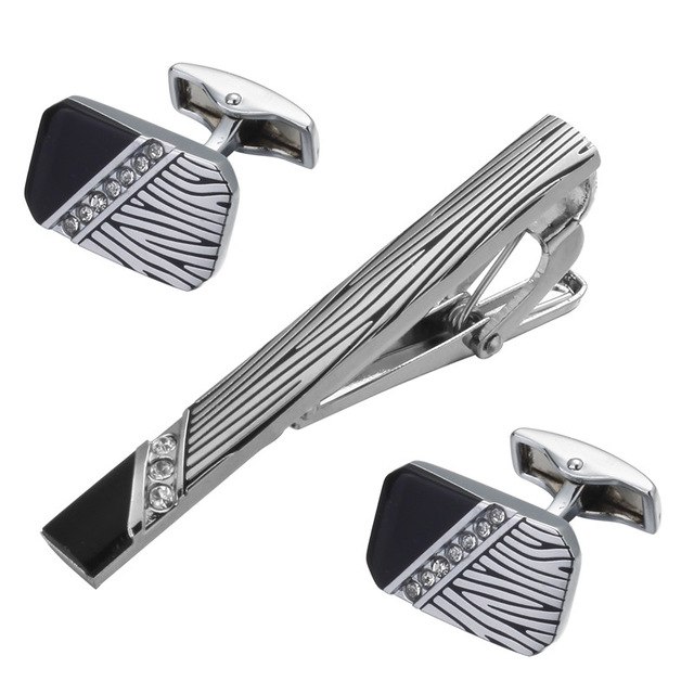 Popis: Luxusní černo - stříbrný set složený ze spony na kravatu a manžetových knoflíčků v designu Zebra crystal je stylovou třešničkou vašeho outfitu.