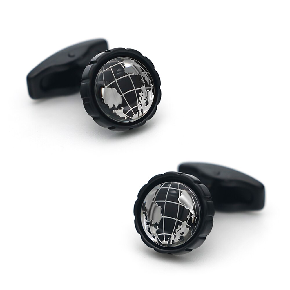 Popis: Černé manžetové knoflíčky se stříbrnou Zeměkoulí jsou nádherným módním doplňkem pro všechny muže - cestovatele.