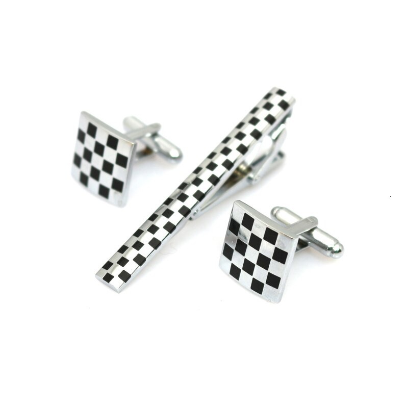 Luxusní set - spona na kravatu a manžetové knoflíčky Šachovnice