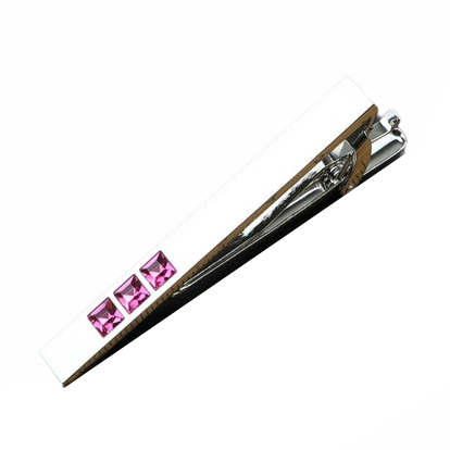 - Stříbrno - růžová spona na kravatu 3 Crystals