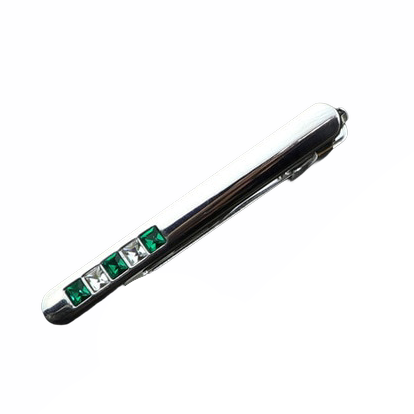 Stříbrno - zelená spona na kravatu 5 Crystals