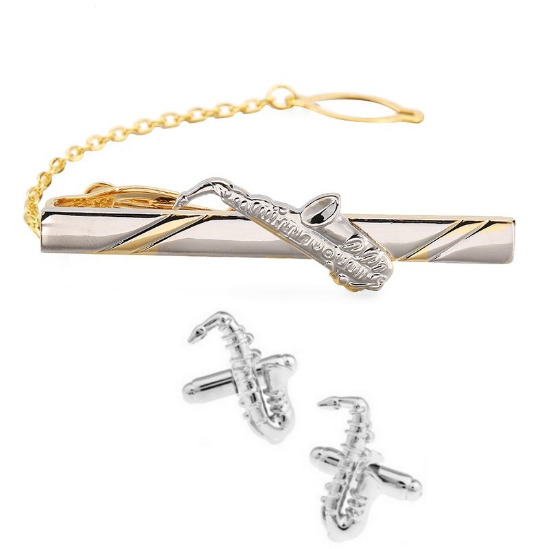 Set - spona na kravatu a manžetové knoflíčky Saxofon