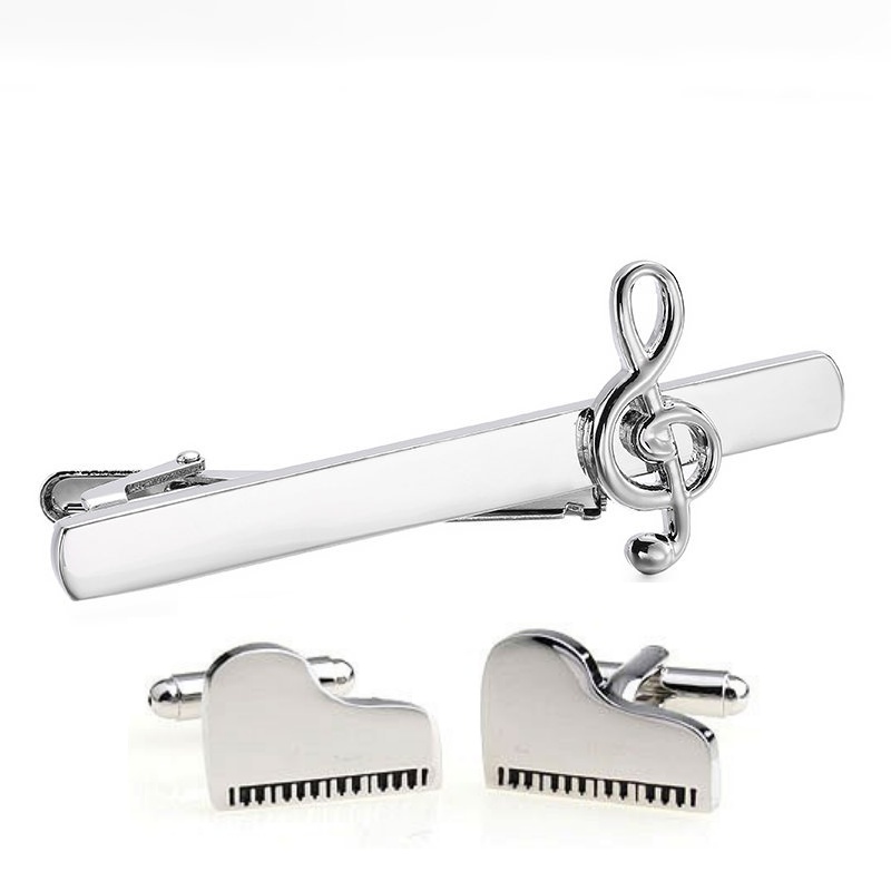 Set - spona na kravatu a manžetové knoflíčky Houslový klíč + klavír