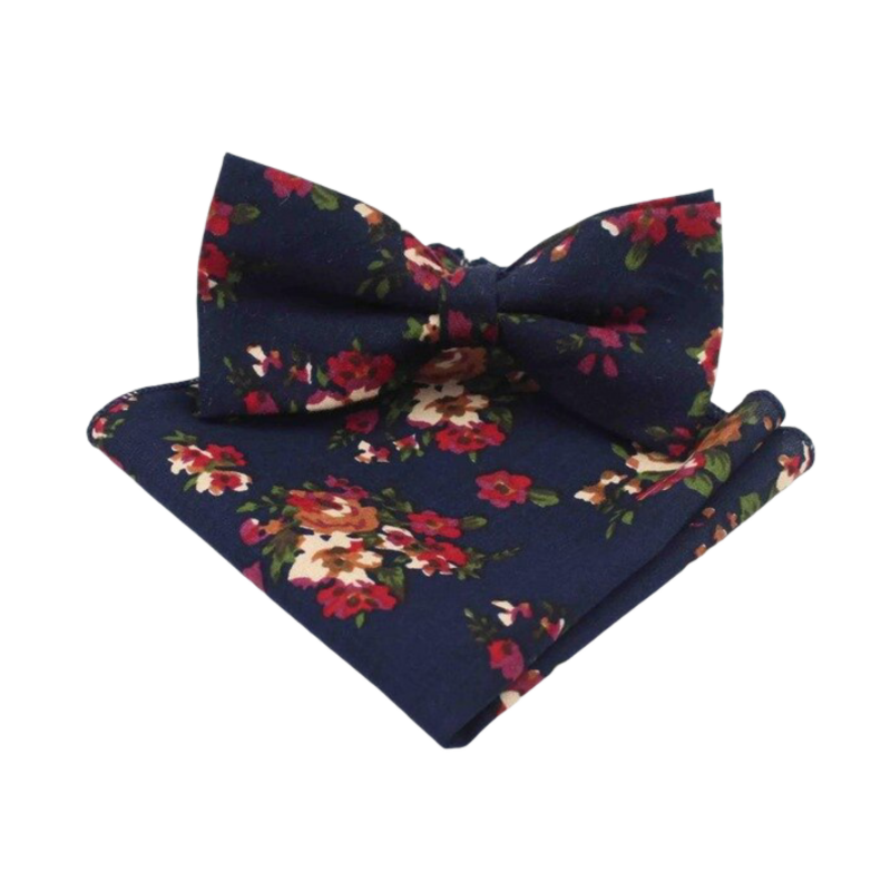 Tmavě modrý set motýlek a kapesník Květiny