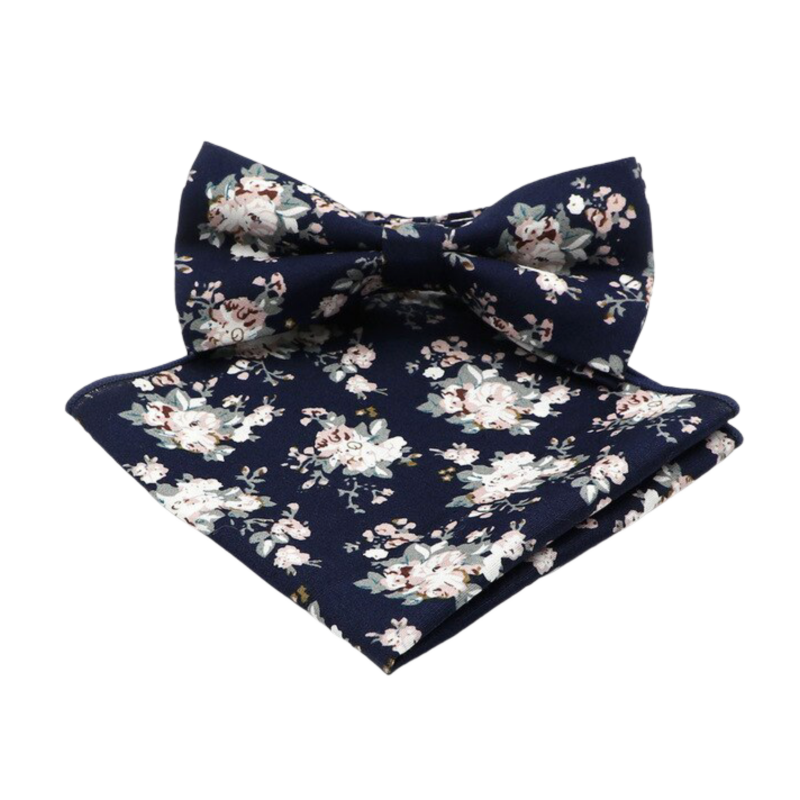 Tmavě modrý set motýlek a kapesník Růže