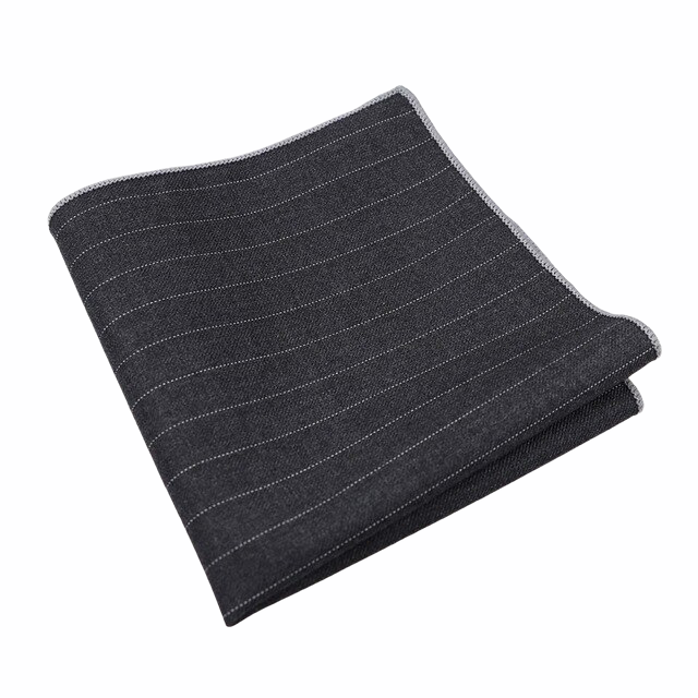 Vyšperkujte svůj dokonalý outfit moderního gentlemana o stylový tmavě šedý kapesníček do saka Lines s decentním vzorem bílých čárek.