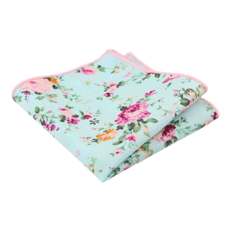 Tyrkysový bavlněný kapesníček je potištěn barevnými růžemi.