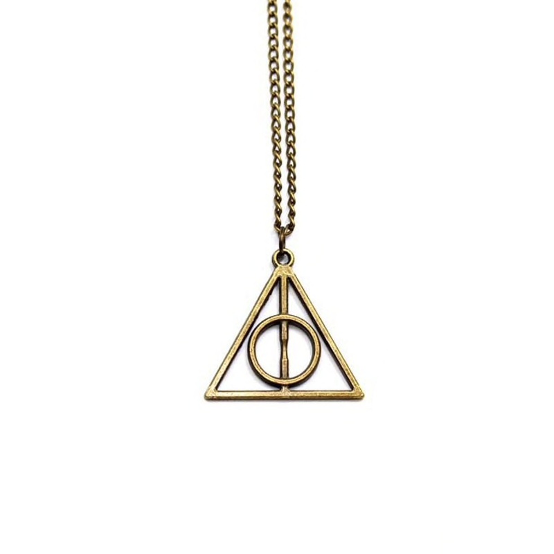 Popis: Tento vintage zlatý náhrdelník s motivem Trojúhelníku smrti přináší kombinaci stylu, symbolismu a výrazné osobitosti. Je ideální pro fanoušky fantasy motivů a originálních šperků. Pohodlný řetízek a detailně zpracovaný přívěsek z něj dělají výjimečný doplněk pro každodenní nošení.