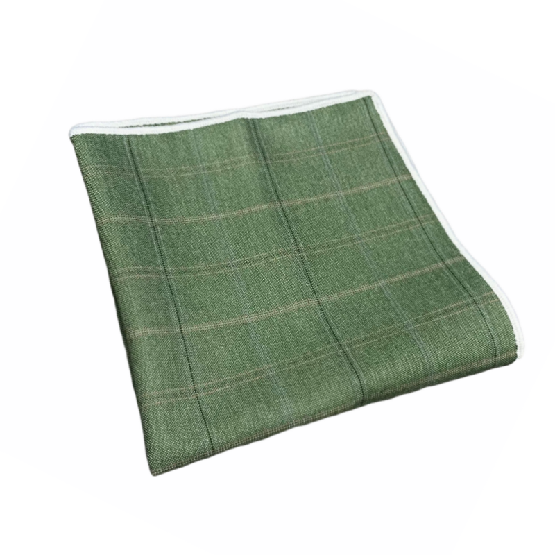 Vyšperkujte svůj dokonalý outfit moderního gentlemana o stylový zelený kapesníček do saka Square, který má barevné tenké linky uspořádané do motivu čtverců.