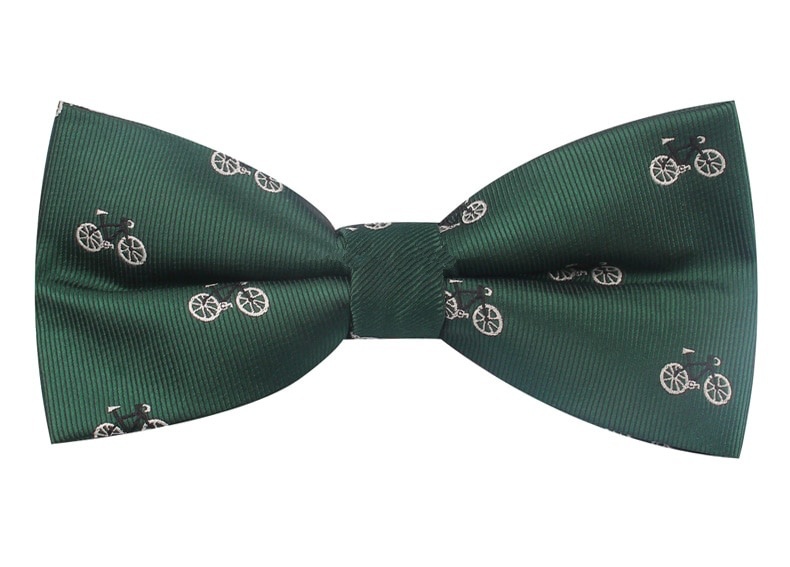 Popis: Originální módní pánský zelený motýlek. Krásný motiv kola - bicyklu po celém motýlku.