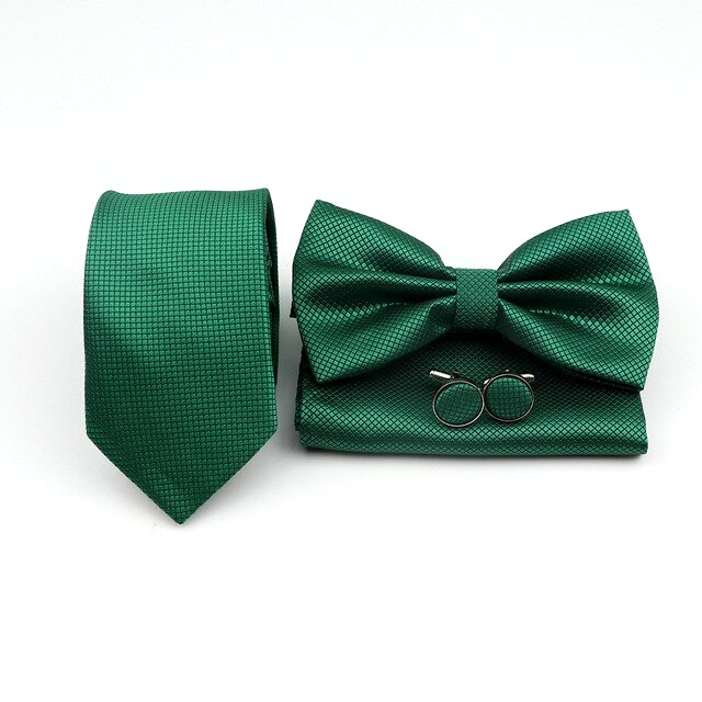 Zelený set kravata, motýlek, kapesník a manžetové knoflíčky Plaid