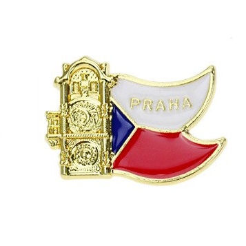 Popis: Nová pánská zlatá brož vlajka České republiky doplněná Staroměstským orlojem a nápisem Praha do klopy saka nebo kabátu je oživením Vašeho outfitu.