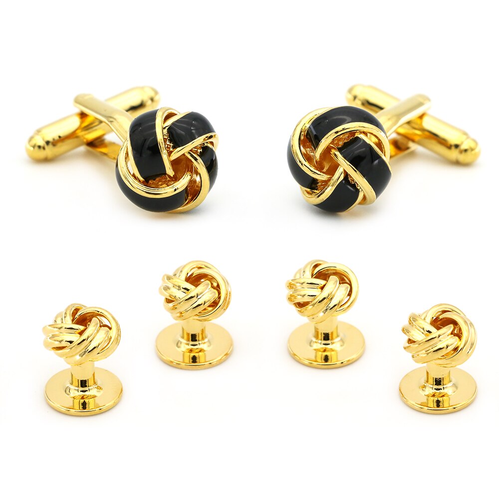 Popis: Luxusní pánský zlato - černý set Uzel složený z manžetových knoflíčků do manžetky košile a knoflíků do košile v oblasti hrudi.