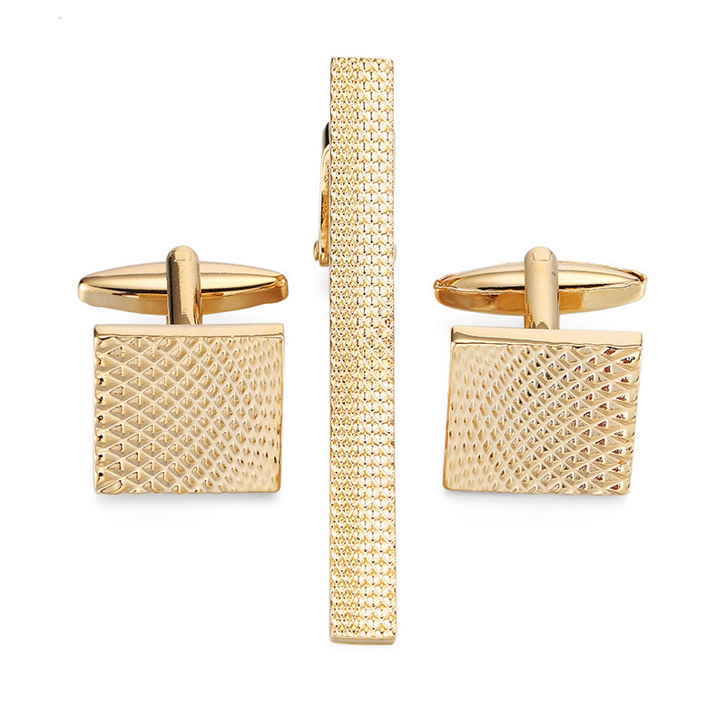 Popis: Stylový módní pánský zlatý set složený ze spony na kravatu a manžetových knoflíčků v designu geometrické iluze je oživením Vašeho outfitu.