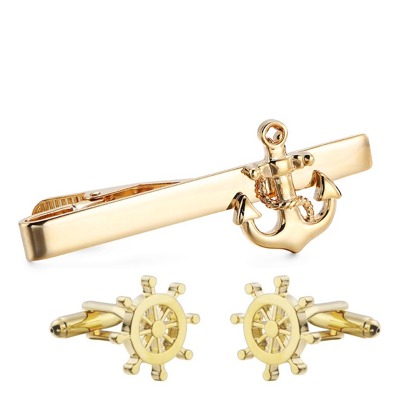- Zlatý set - spona na kravatu a manžetové knoflíčky Kotva a kormidlo