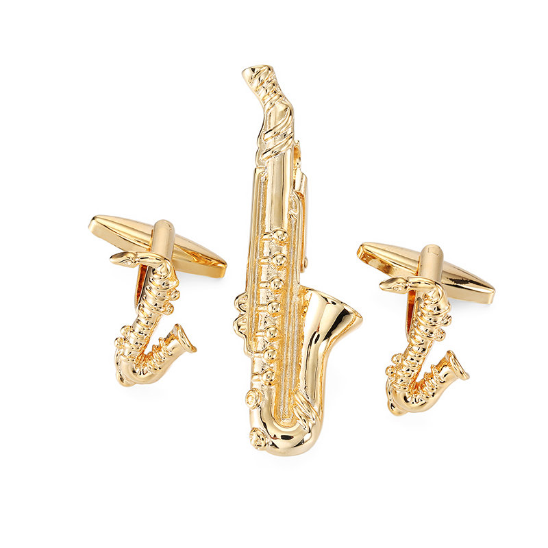 Set - spona na kravatu a manžetové knoflíčky Saxofon