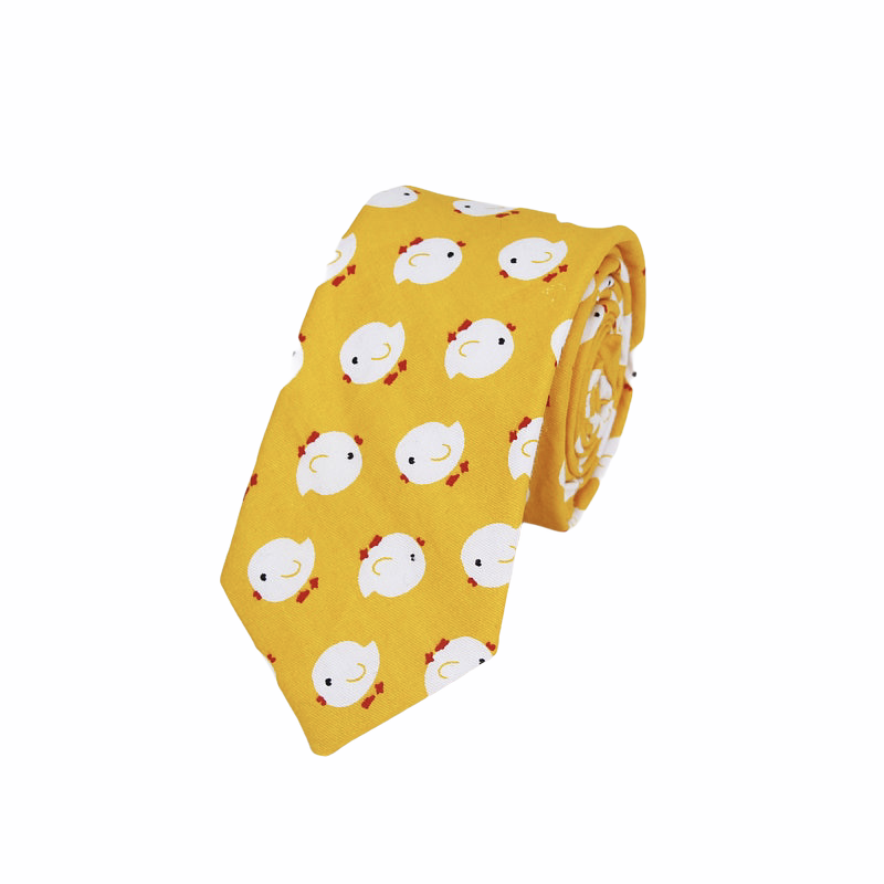 Popis: Nová žlutá pánská bavlněná kravata s roztomilými Kuřátky.