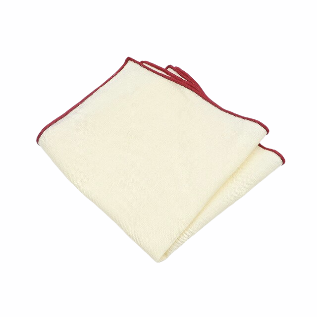 Vyšperkujte svůj dokonalý outfit moderního gentlemana o žlutý bavlněný kapesníček do saka Color Line s kontrastním červeným obšitím.