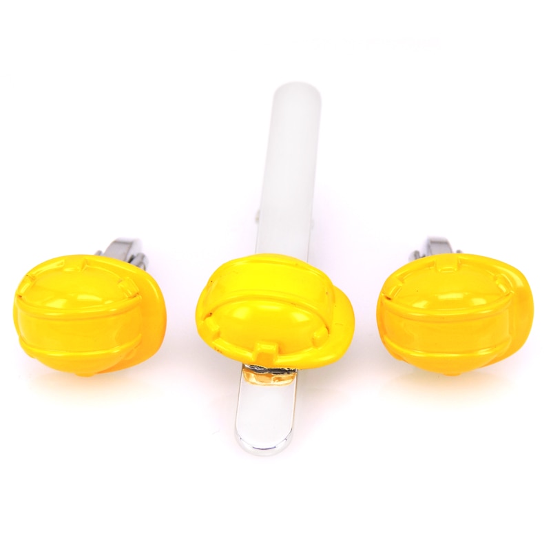 Žlutý set - spona na kravatu a manžetové knoflíčky Pracovní helma